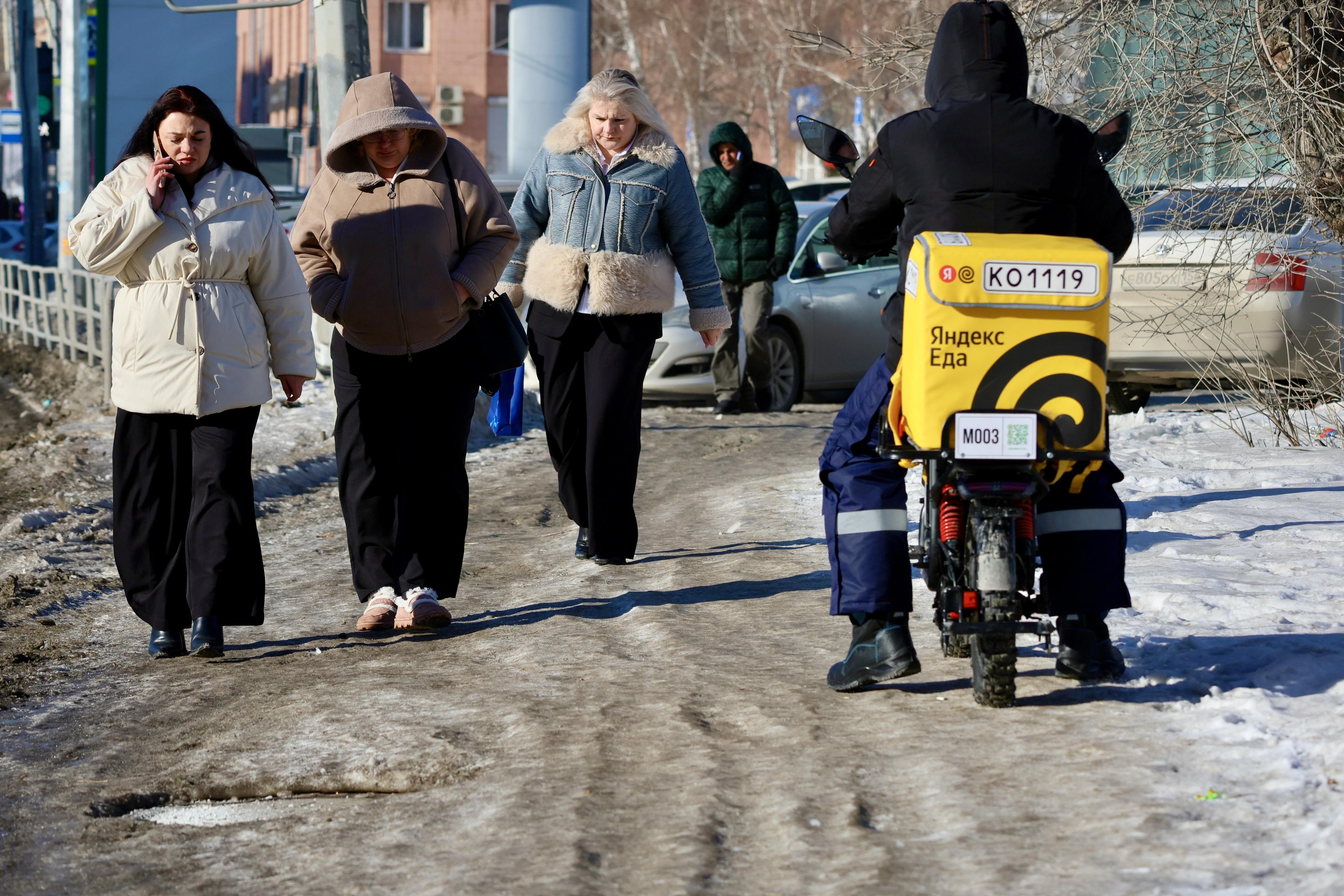 Движение по обледенелому тротуару вдоль дороги особенно опасно из-за отсутствия опор.