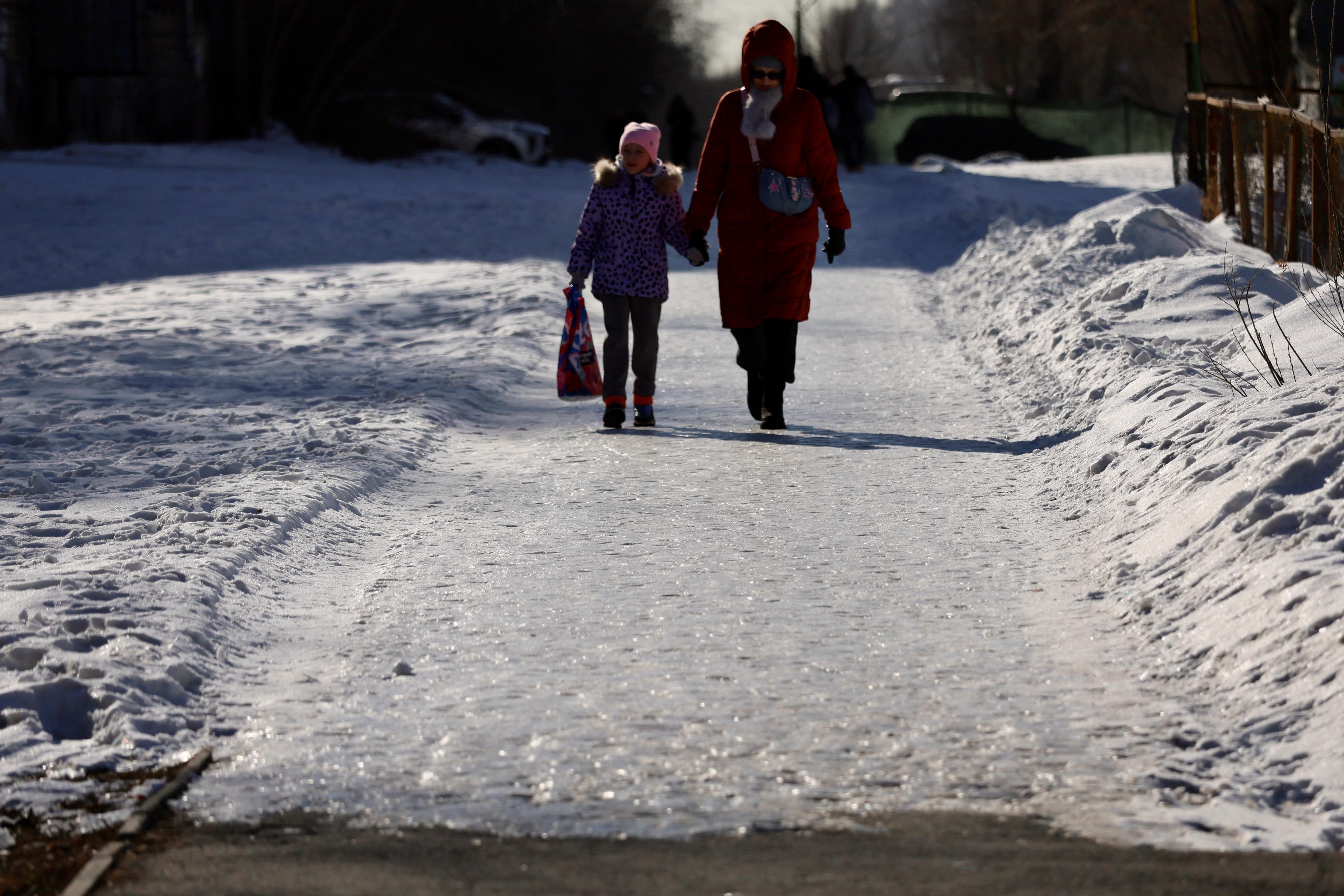 Резкое похолодание в Челябинске после оттепели привело к обледенению тротуаров. Пешеходные дорожки покрылись скользким льдом, что значительно повышает риск падений и травм.