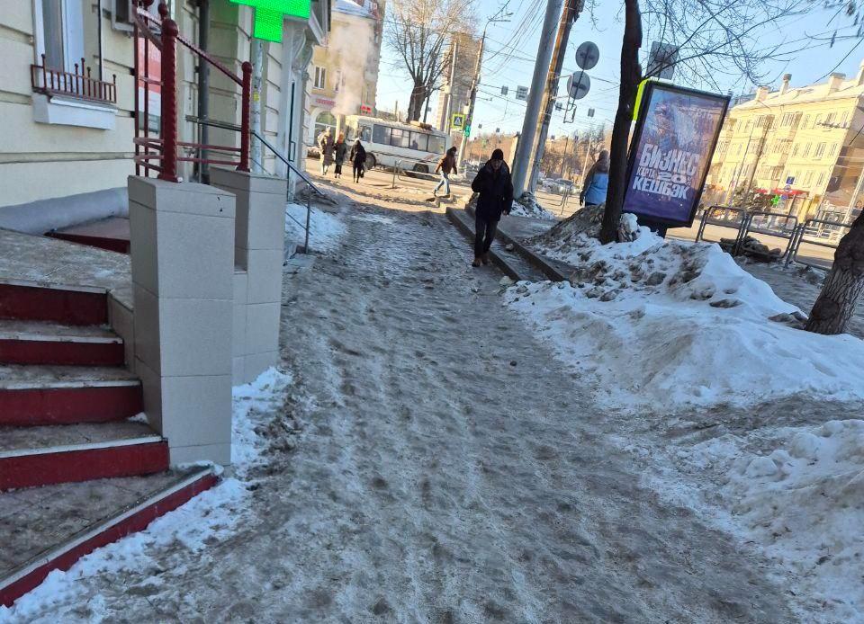 В Ленинском районе ситуация с обледеневшими тротуарами более сложная.