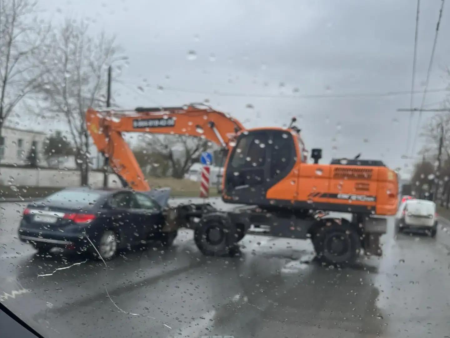 Столкновение экскаватора и легковушки в Челябинске