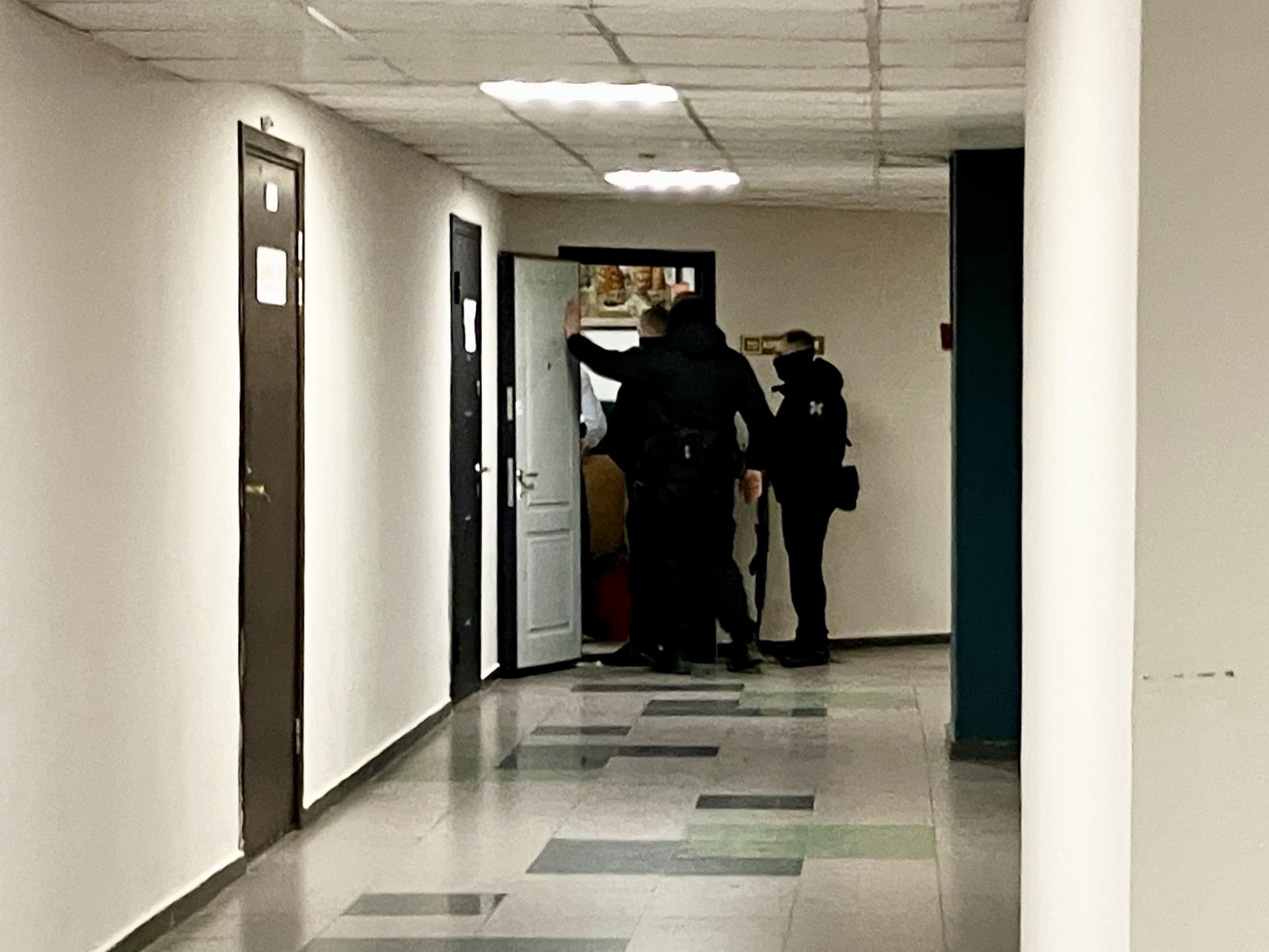 У кабинета администрации бизнес-центра были замечены вооруженные люди в форме.